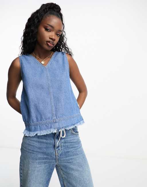 Wrangler denim tank top with fringing in dark blue
