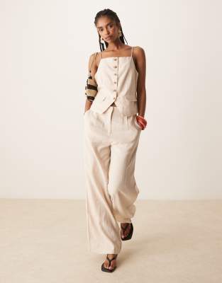 YAS linen touch waistcoat and tailored pants set in cream melange