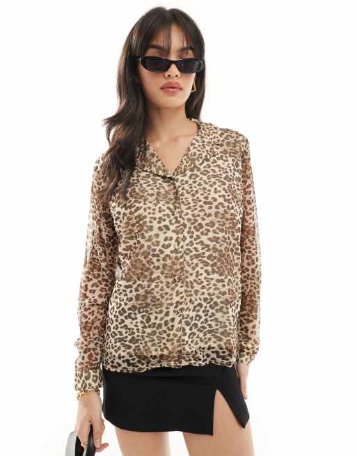 Y.A.S sheer open neck chuck on shirt in leopard print