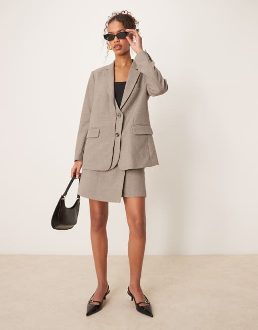 YAS tailored blazer and skirt set in taupe