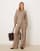 YAS tie waist cable knit cardigan and wide leg pants set in light brown