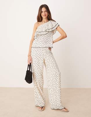 YAS wide leg pants in cream and black polka dot (Part of a set)