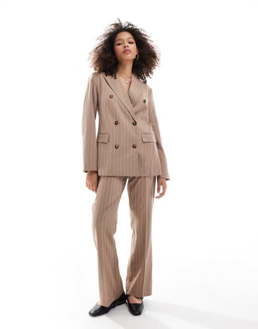 AWARE cropped flared trouser co-ord in beige pinstripe