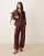 AWARE open collar blazer & pleated wide leg trouser co-ord in port