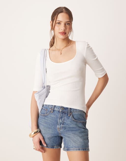 AWARE ribbed scoop neck top in white