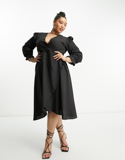 AX Paris Plus wrap midi dress in black