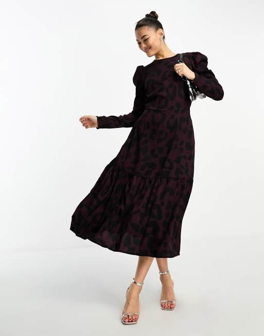 AX Paris midi dress with puff sleeve in plum animal print