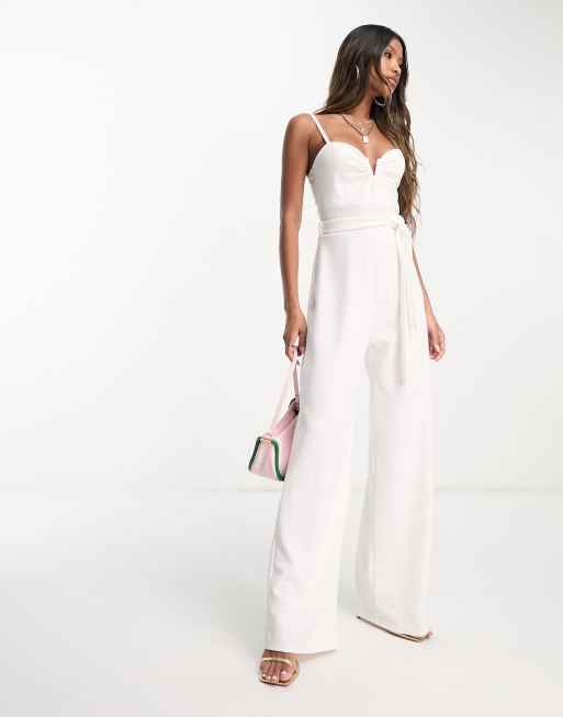 AX Paris plunge v neck wide leg jumpsuit in white