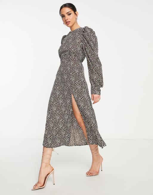 AX Paris puff sleeve midi dress in grey print