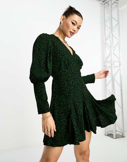 AX Paris puff sleeve mini dress in green leopard print