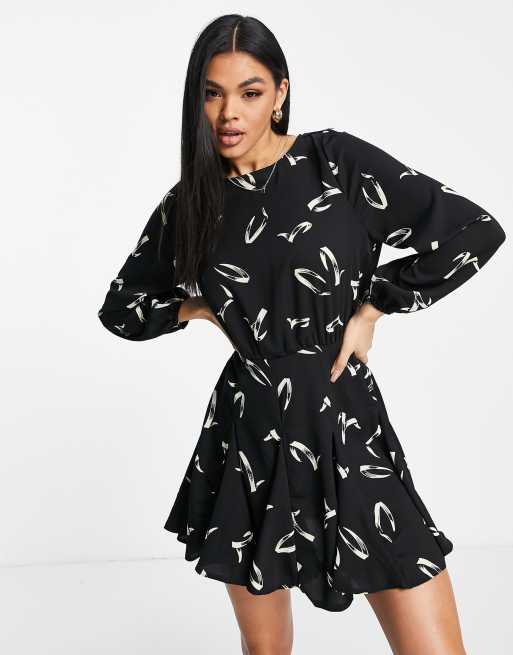 AX Paris satin mini dress with long sleeves in black abstract