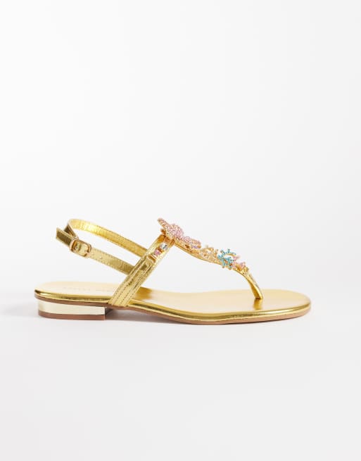 Azalea Nautia embellished flat sandals in gold