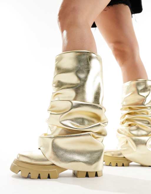 Azalea Wang Mate foldover knee boot in metallic gold