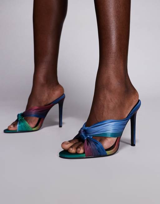 Azalea Wang Talaat heeled mule sandals in blue and green