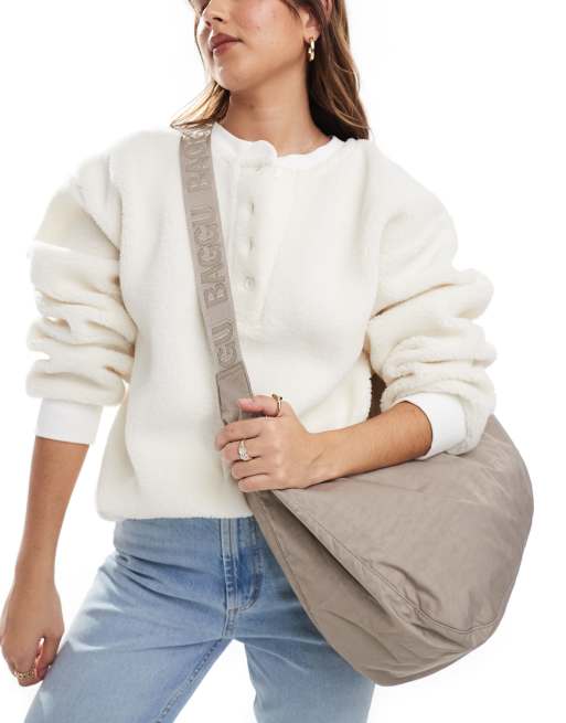 Baggu 10.5"" x 19.5"" large nylon crescent bag in dove grey