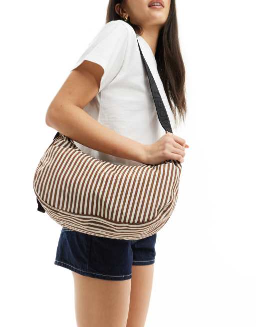 Baggu medium nylon crescent crossbody bag in brown stripe