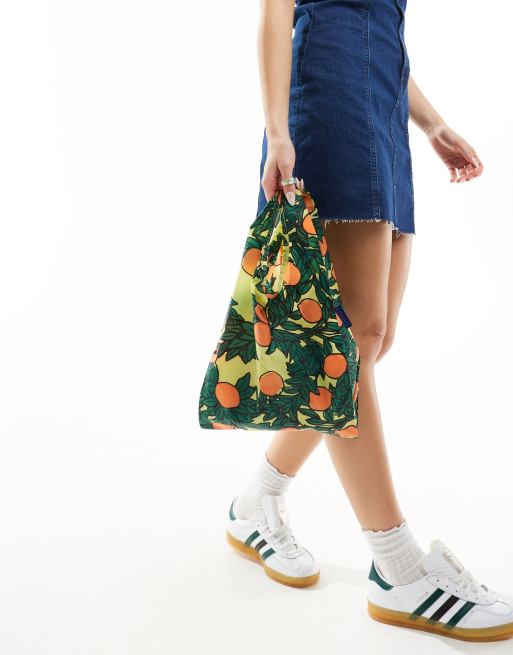 Baggu mini nylon shopper tote bag in orange tree yellow