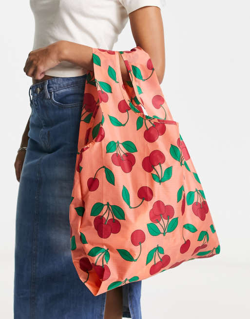 Baggu standard nylon shopper tote bag in sherbet cherry