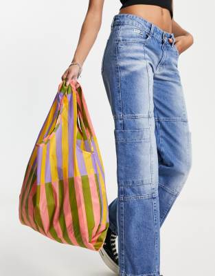 Baggu standard nylon shopper tote bag in sunset quilt stripe