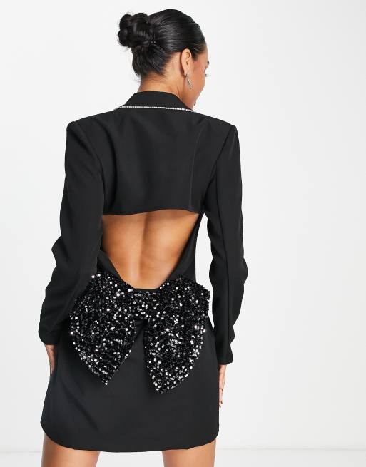 Band Of Stars premium blazer dress with sequin silver bow cut out in black