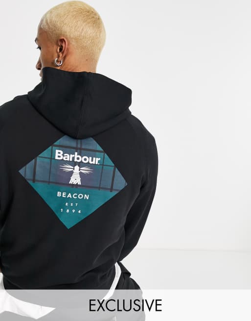 Barbour Beacon back logo overhead hoodie in black Exclusive at ASOS