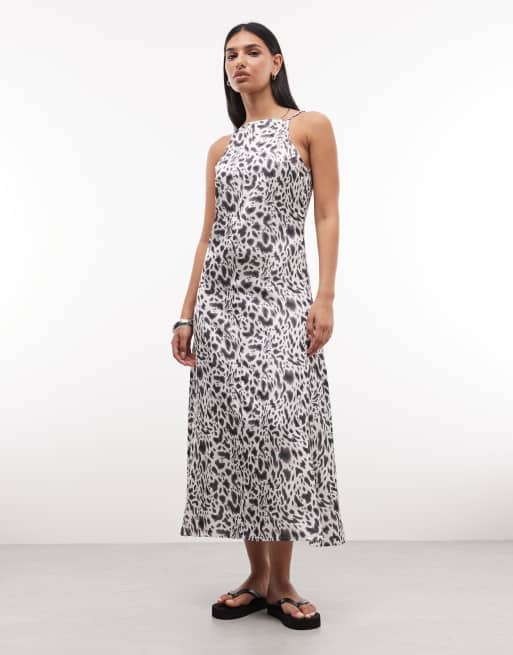 Barbour International Brianna leopard print high neck low back satin dress in purple