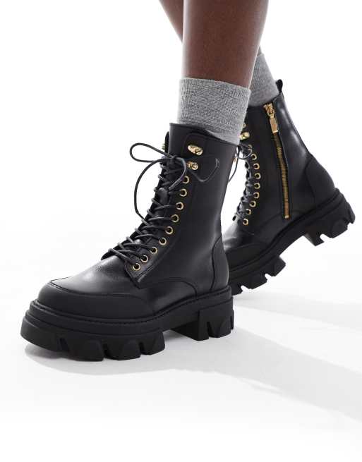 Barbour International Ellen rugged sole leather lace up boots in black