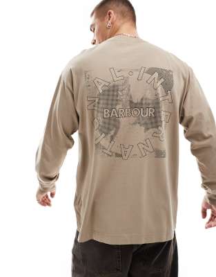 Barbour International long sleeve mapped print os t-shirt in timberwolf