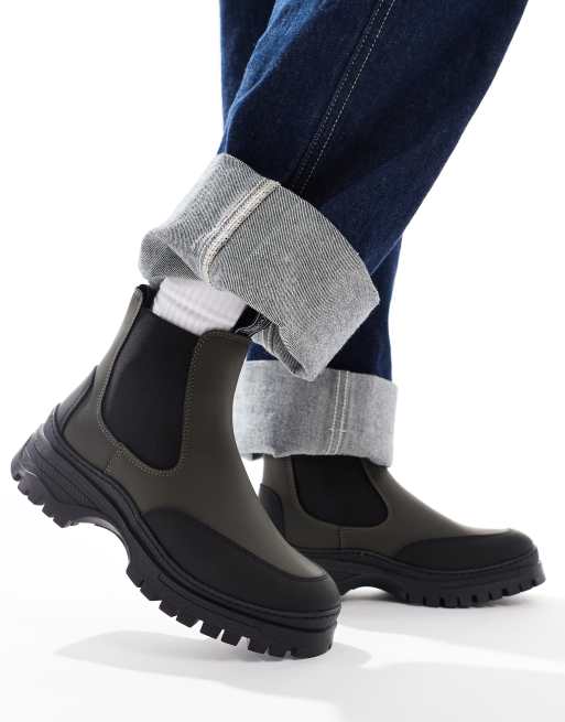 Barbour International Morgan leather rubber ankle boots in khaki/black