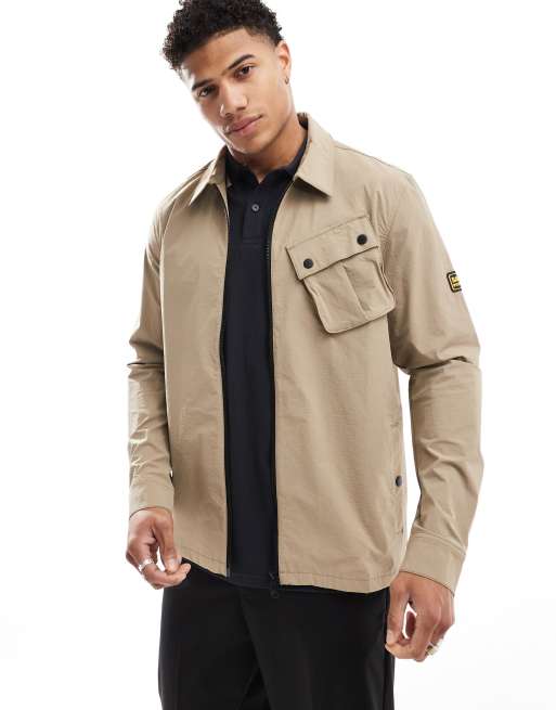 Barbour International zip up nylon shacket in stone