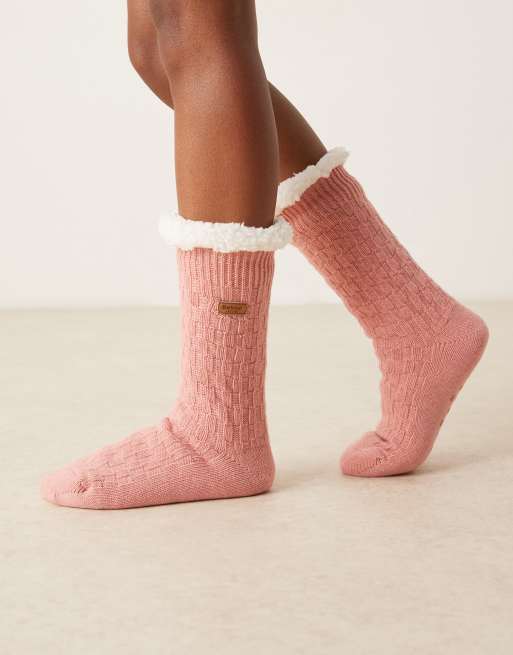 Barbour cable knit lounge socks in dusty pink