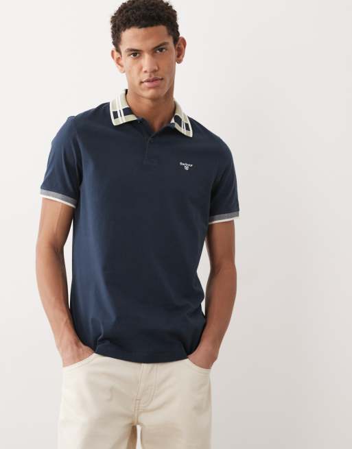 Barbour Callington short sleeve tailored fit polo shirt with tartan collar in navy