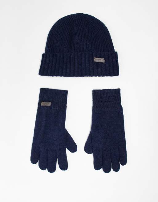 Barbour Carlton beanie & gloves gift set in navy