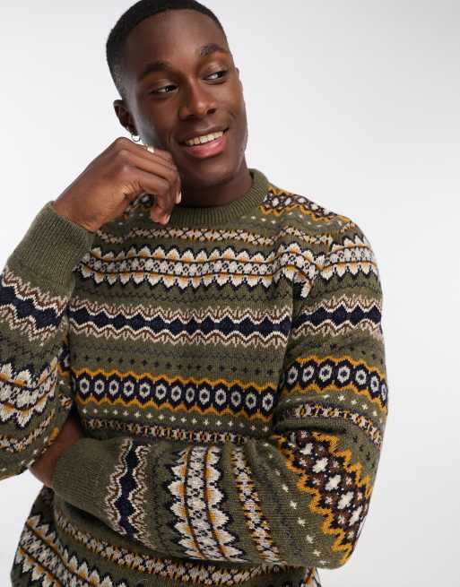 Barbour Case Fair Isle crewneck jumper in green