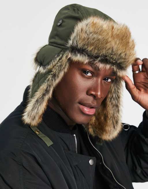 Barbour Cleadon faux fur trapper hat in khaki
