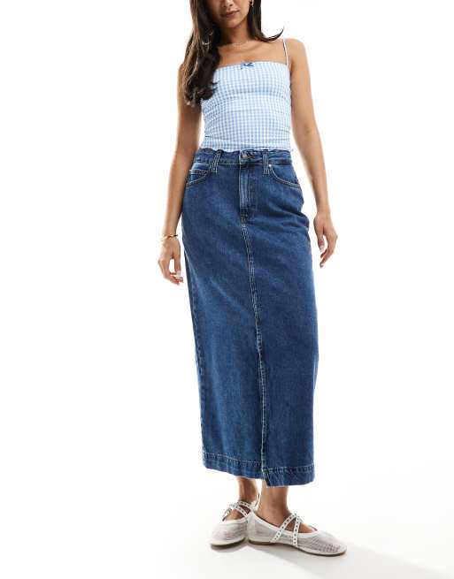 Barbour denim midi skirt in mid wash