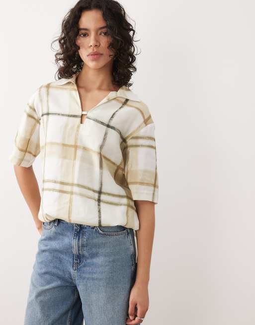 Barbour Gianna short sleeve relaxed notch neck tartan shirt green