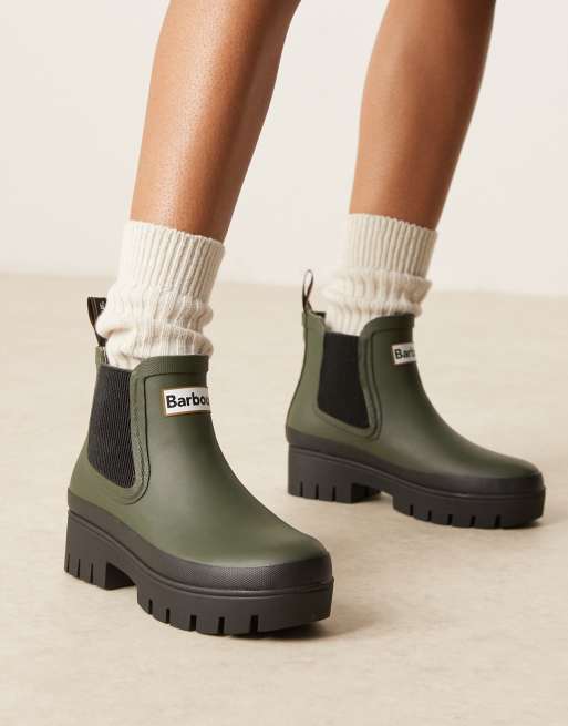 Barbour Halton wellington boots in olive/black
