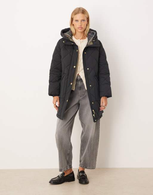 Barbour Kailyn puffer jacket in black with tartan lining