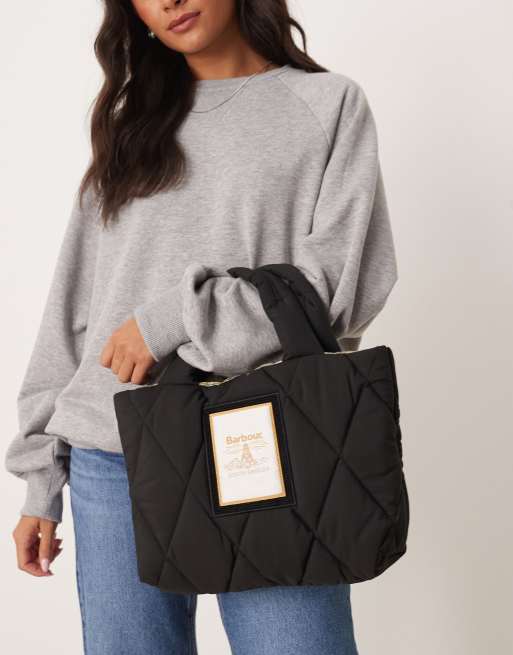Barbour Mariah mini quilted tote bag in black/ancient - BLACK