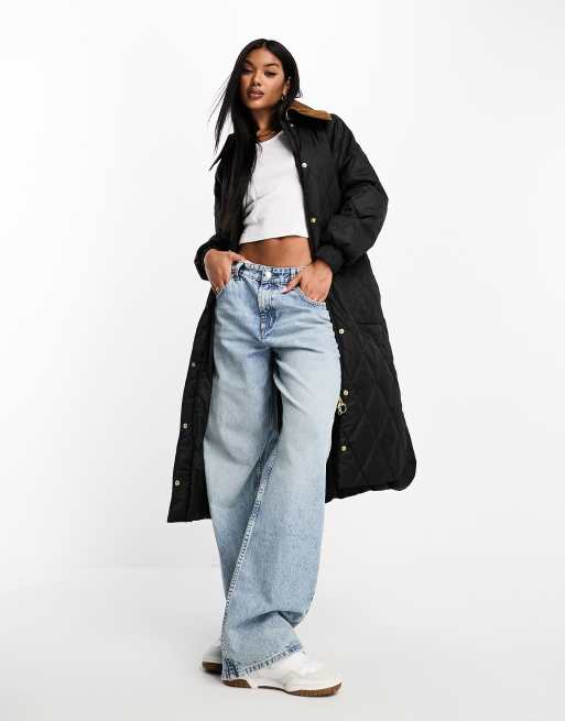 Barbour Marsett quilted button up long jacket in black