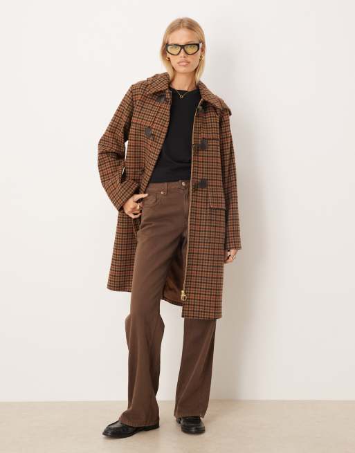 Barbour Melody check wool duffle coat in brown/orange check/hessian tartan