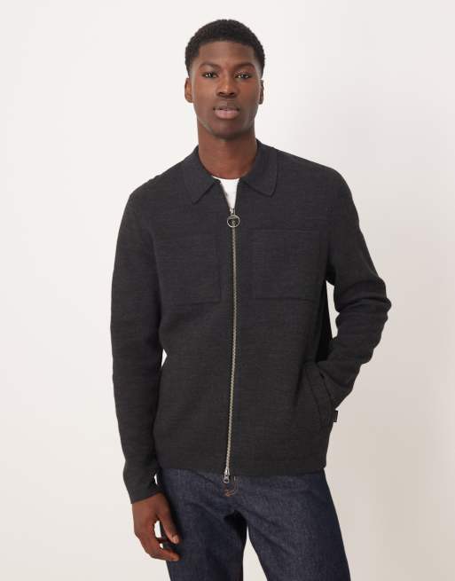 Barbour oversized knitted zip through in charcoal marl