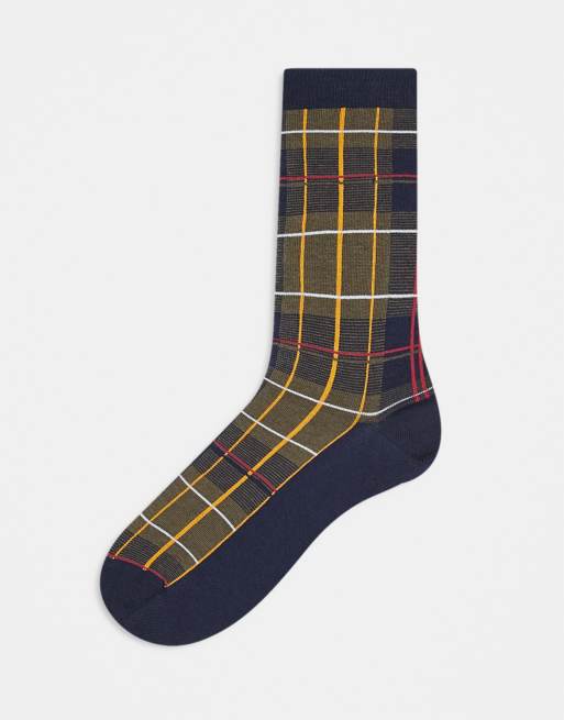 Barbour tartan check socks in green