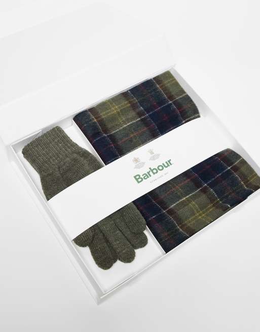 Barbour tartan scarf & glove gift set in green