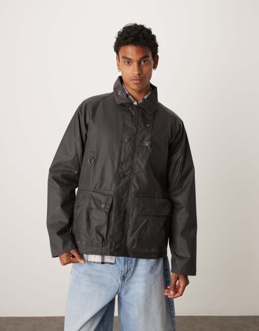 Barbour utility Spey wax jacket in charcoal - GREY