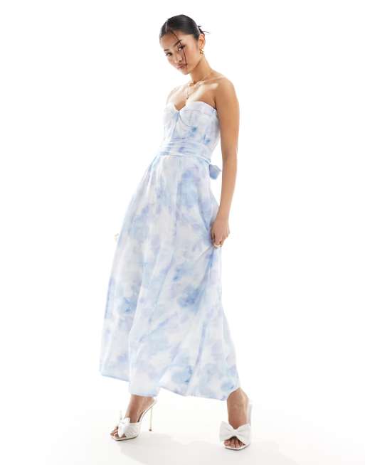 Bardot bandeau tie dye midi dress in blue