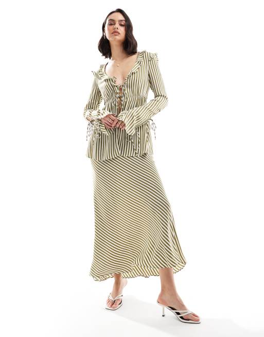 Bardot bias cut midi skirt in green stripe co ord