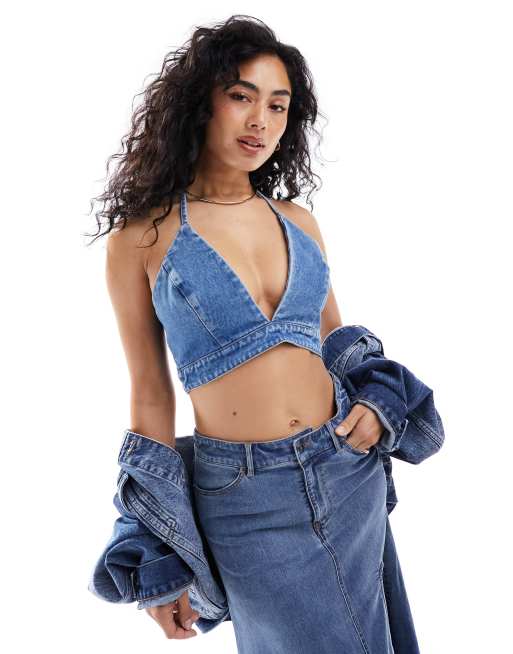 Bardot denim crop top co ord in blue