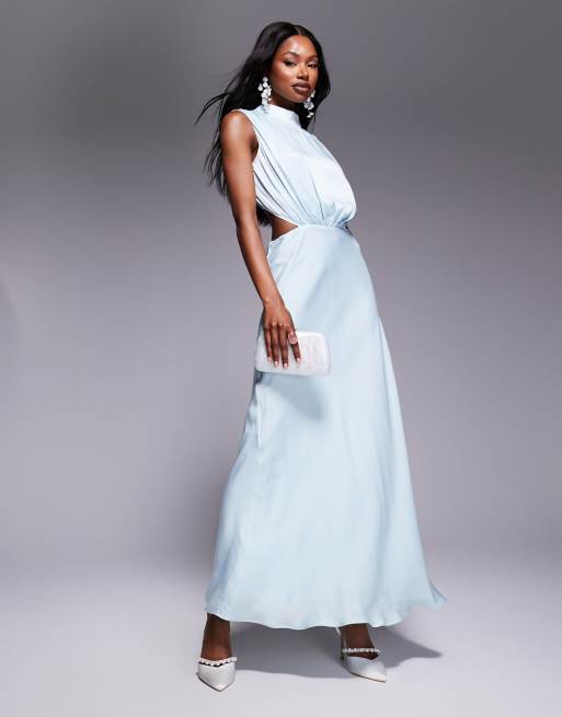 Bardot open back high neck maxi dress in aqua